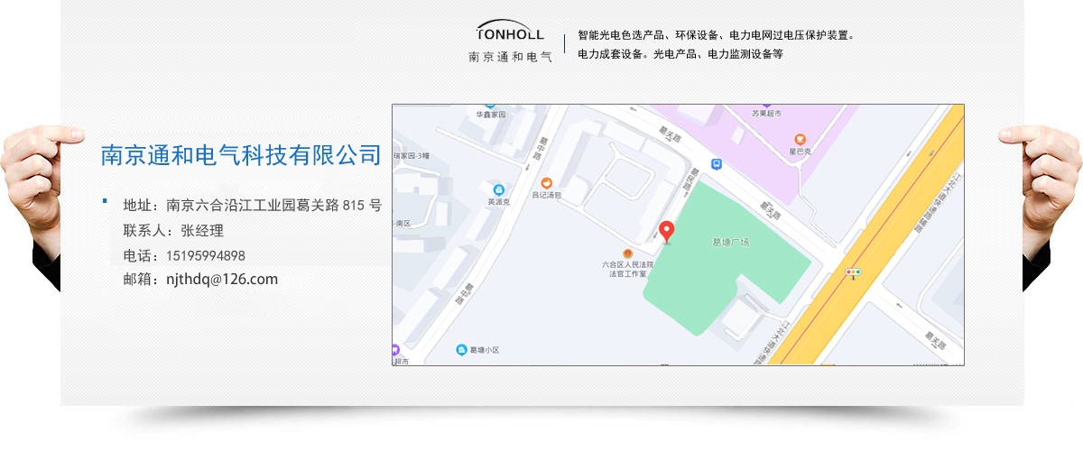 南京通和電氣科技有限公司是致力于研發(fā)、 生產(chǎn)防雷產(chǎn)品的科技型企業(yè)。公司集研發(fā)、生產(chǎn)、銷售、服務(wù)為一體,目前主要產(chǎn)品為:智能光電色選產(chǎn)品、環(huán)保設(shè)備、電力電網(wǎng)過電壓保護(hù)裝置。電力成套設(shè)備。光電產(chǎn)品、電力監(jiān)測設(shè)備等。公司秉承“誠信。創(chuàng)新、和諧。卓越”的經(jīng)營理念,研發(fā)創(chuàng)新的專業(yè)態(tài)度服務(wù)客戶,追求卓越,以其高水準(zhǔn)的產(chǎn)品品質(zhì)和良好的企業(yè)信譽(yù),在發(fā)展進(jìn)程中得到了社會廣泛認(rèn)可。